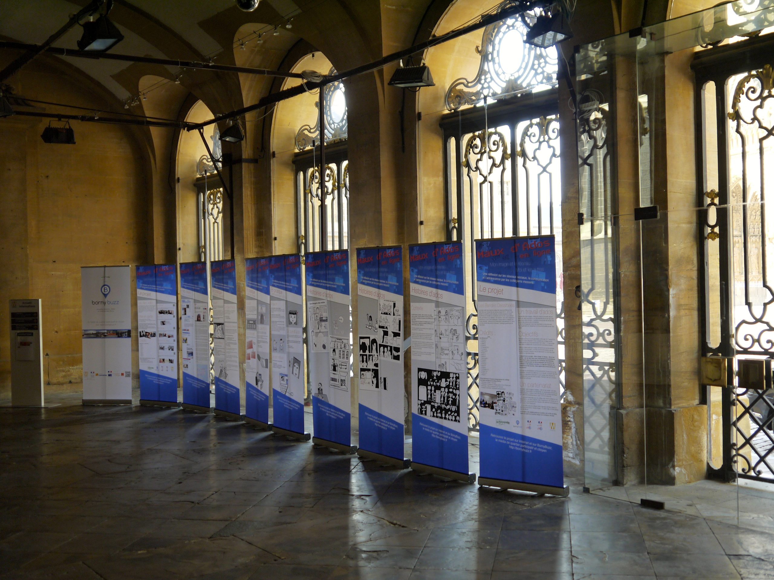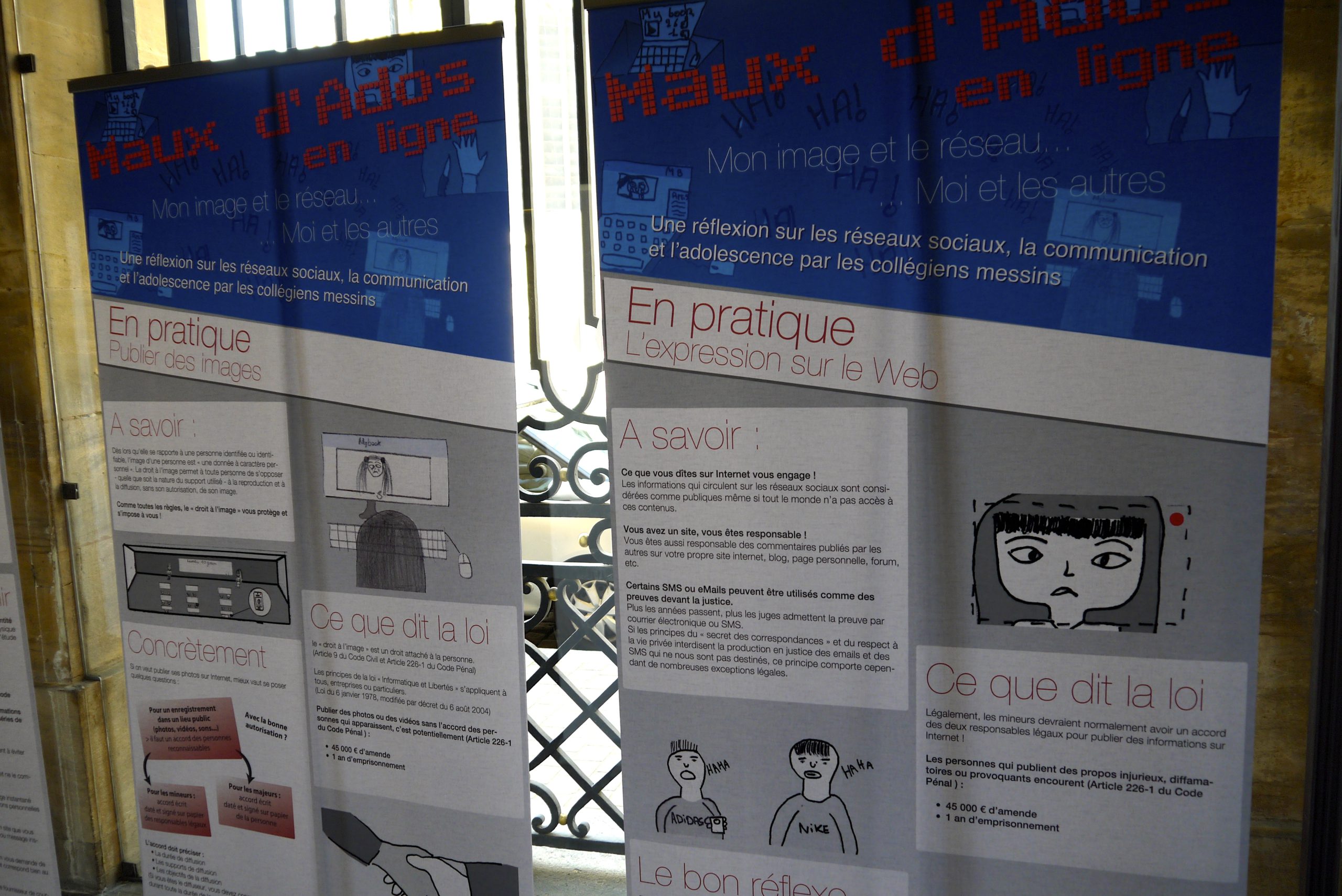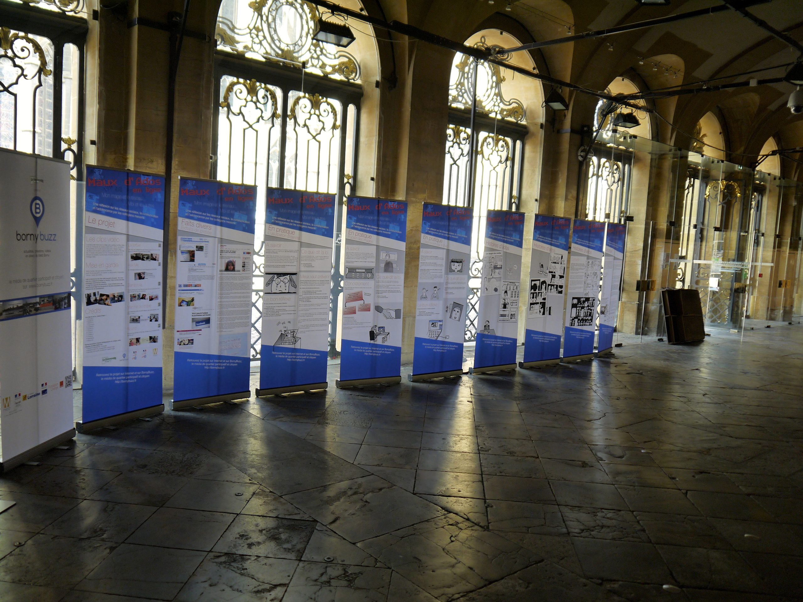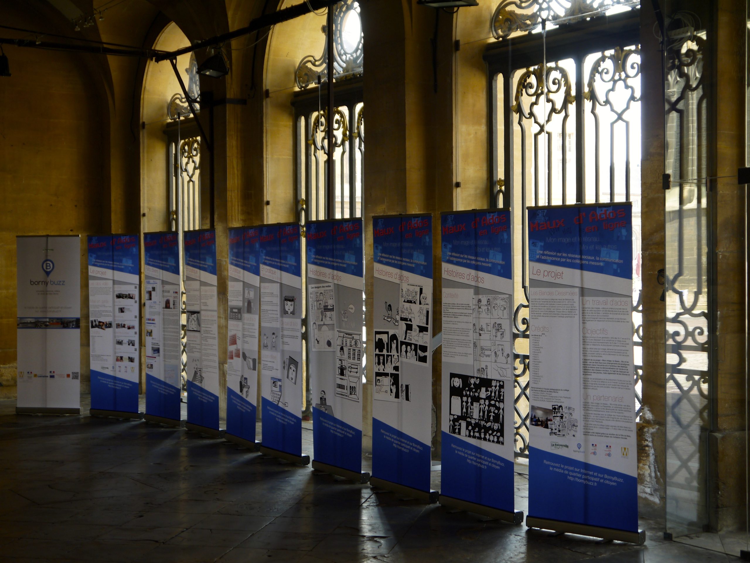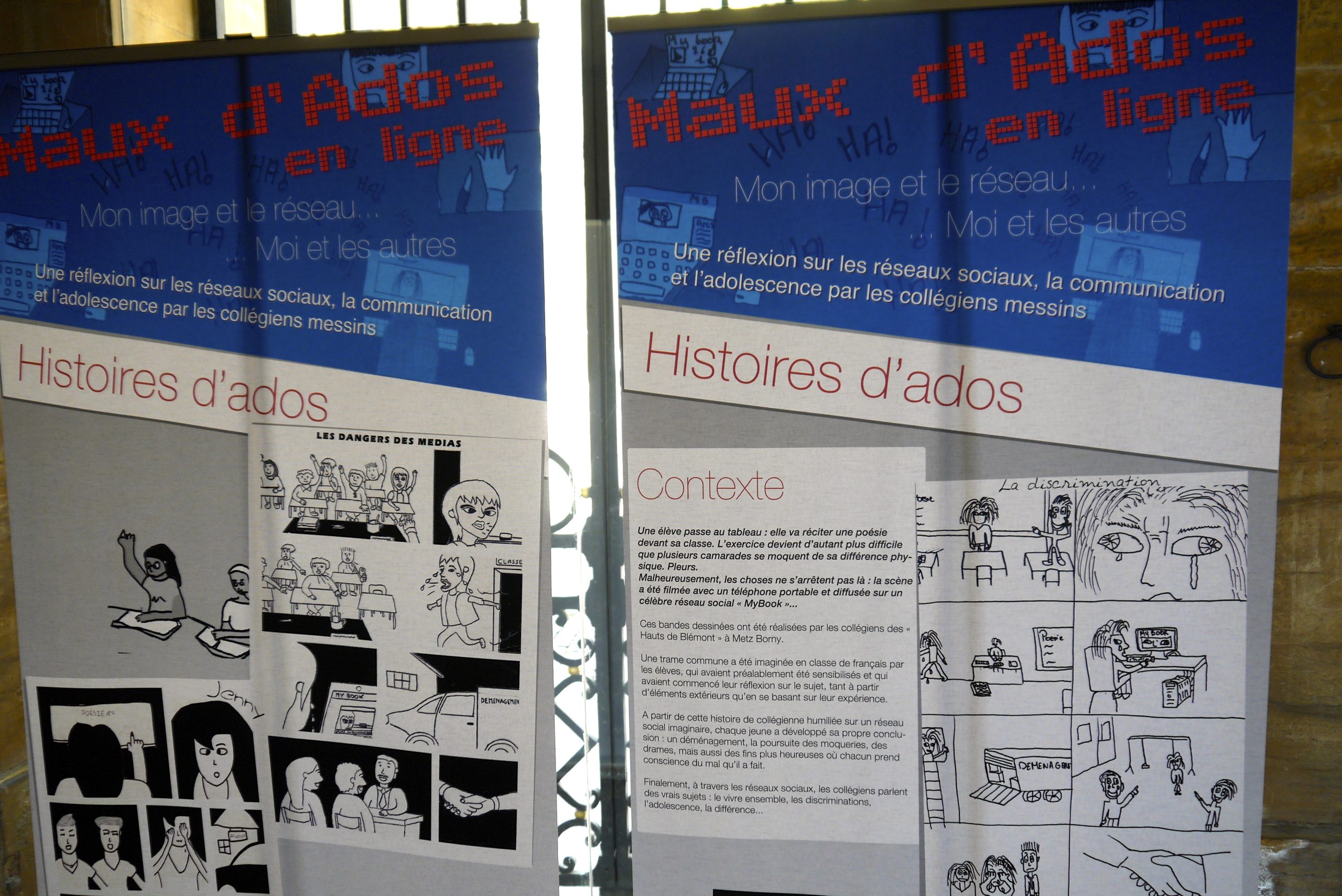 Tout au long de l’année scolaire 2013-2014, l’association La Passerelle a travaillé avec les collégiens de Metz Borny et de Metz Bellecroix sur des supports mettant en jeu leurs usages des réseaux sociaux. Ils ont été affichés à l’Hôtel de Ville avant d’être utilisé comme supports d’action dans les collèges de la ville.